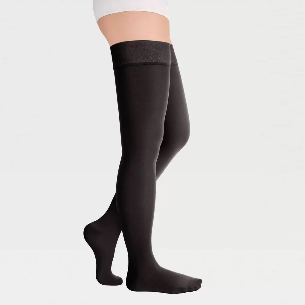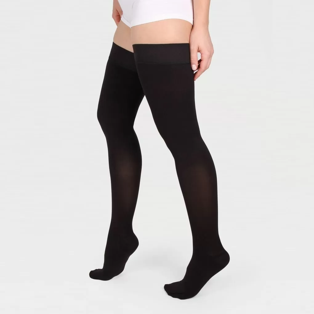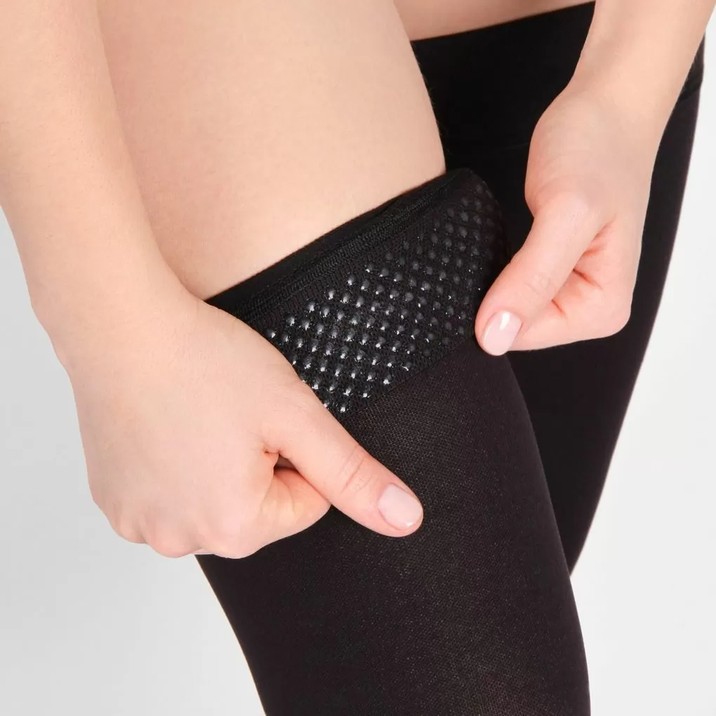 - резинка на силиконовой основе, в том числе на широкое бедро, мягко фиксирует чулок , не нарушая кровотока