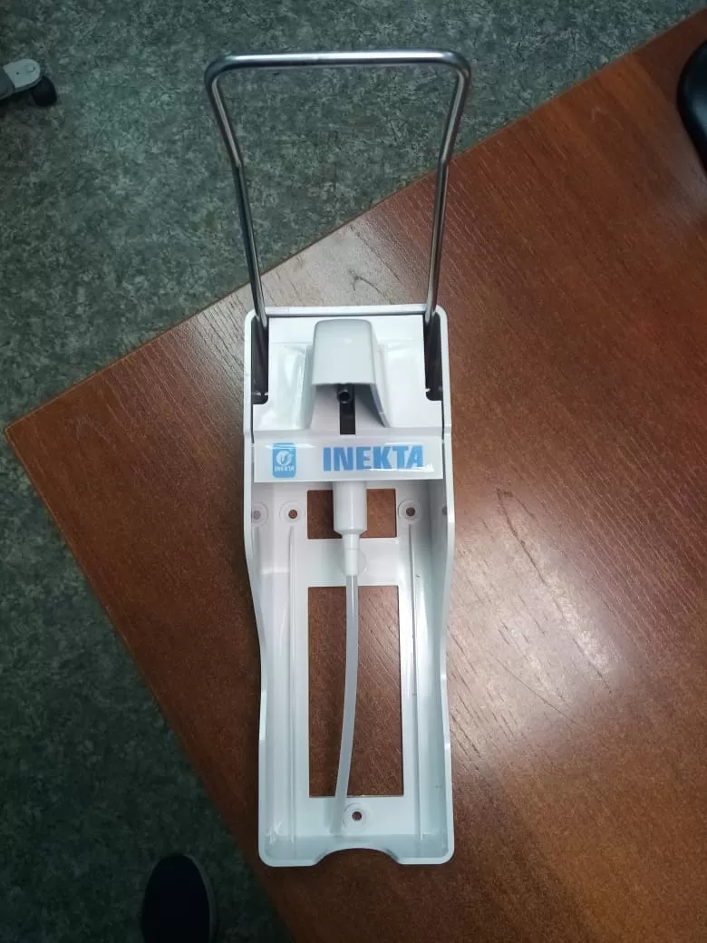 Рассчитан на сменные литровые емкости предназначенные для антисептических, дезинфицирующих средств и жидкого мыла.