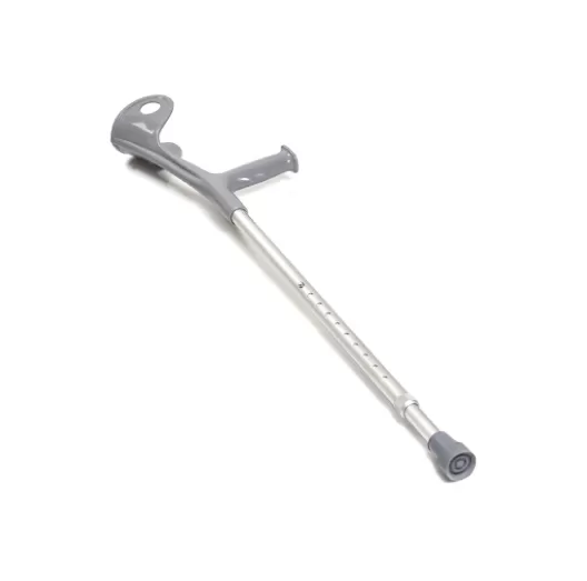 Локтевой обхват и рукоятка выполнены из прочного нескользящего износостойкого пластика Костыль с опорой под локоть комплектуется резиновой насадкой, а также устройством противоскольжения