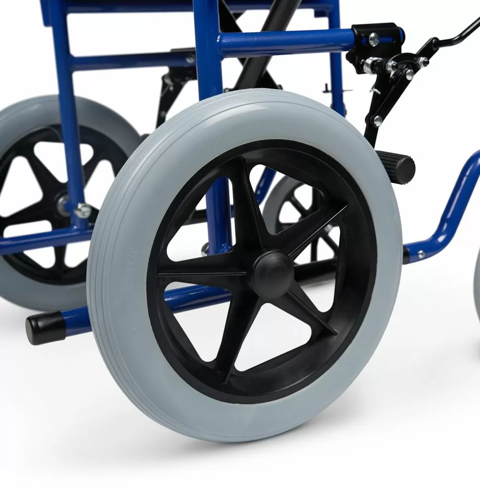 - Кресло оснащено двумя антиопрокидывающими устройствами, помогающими безопасно преодолевать препятствия.