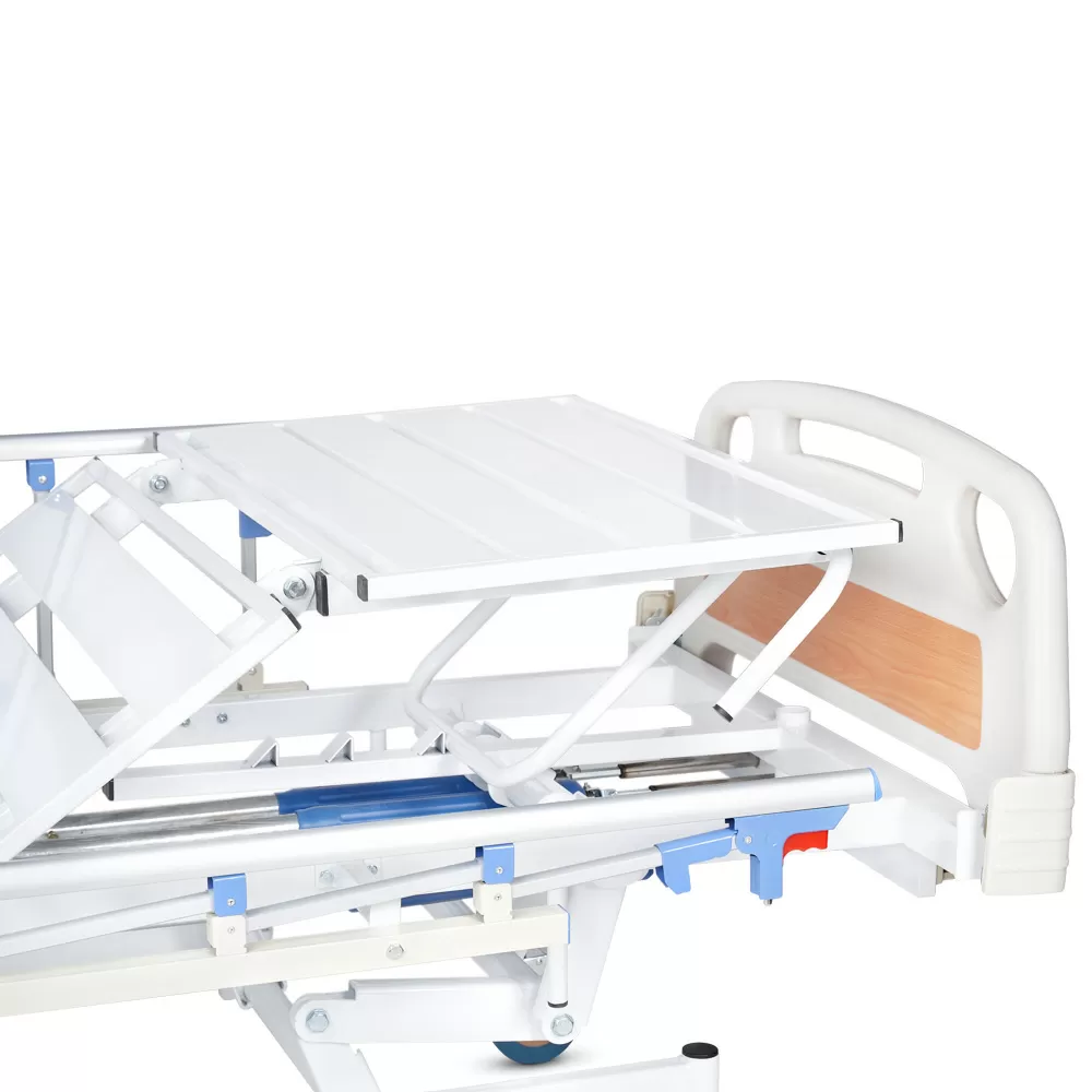 - Спинная и тазобедренная секции кровати регулируются по углу наклона с помощью двух приводов с червячными механизмами. Наклон голеностопной секции фиксируется механизмом-гребенкой.
