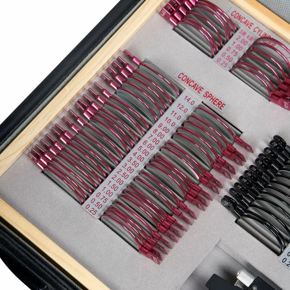 - Набор включает специальные сферические линзы для обследования зрения. В комплект входят: парные отрицательные (-) (вогнутые) от 0.25 дптр до 14.00 дптр и парные положительные (+) (выпуклые) линзы от 0.25 дптр до 6.00 дптр. Выпуклые линзы используются для исследования гиперметропии (слабой клинической рефракции), вогнутые - для исследования миопии (сильной клинической рефракции) и старческой дальнозоркости.
