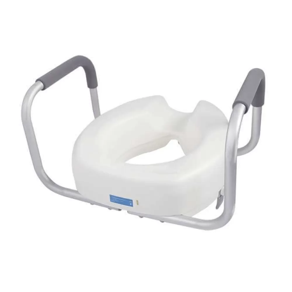 Подходит для унитаза любой формы, устанавливается и фиксируется при помощи трех креплений. Гигиенический пластик легко моется и не впитывает запахи. Большие широкие поручни покрыты мягкими накладками, приятными для соприкосновения с кожей.