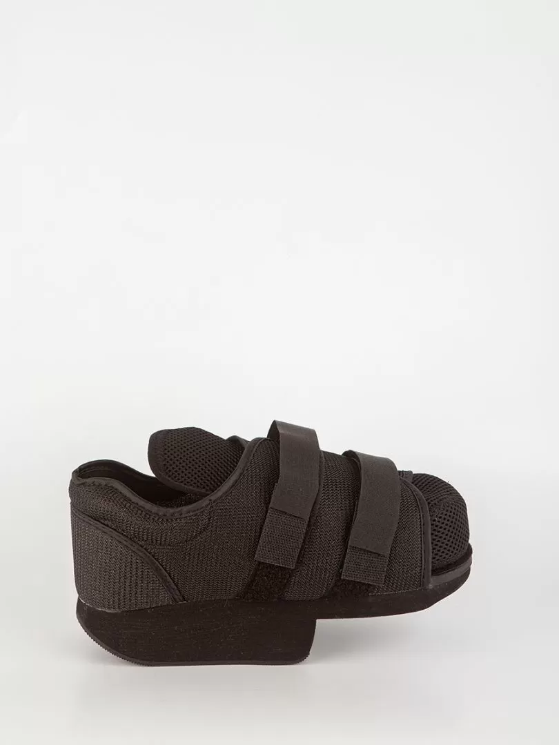- Полностью разъемная конструкция и регулировка по полноте с помощью застежек velcro позволяет использовать обувь при наличии отеков или послеоперационных повязок.