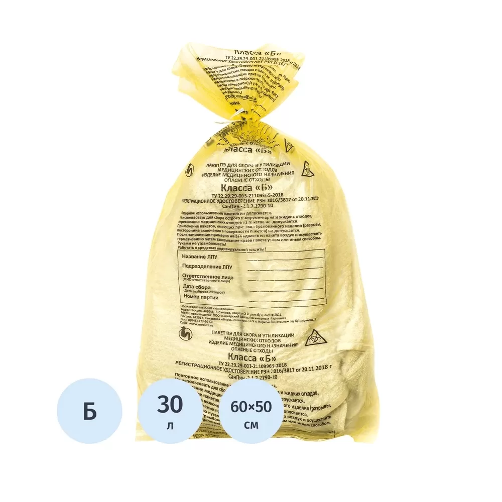 - Объём пакета составляет 30 л, размер: 50×60 см.