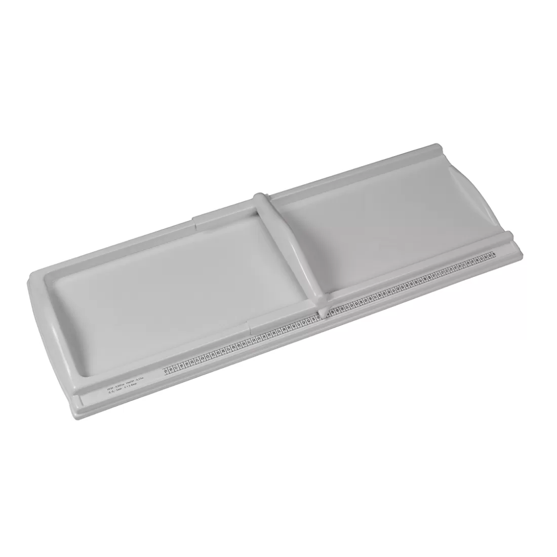 - Имеет мерную планку, которая закреплена на платформе, ползун, а также бортики по бокам и с головы
