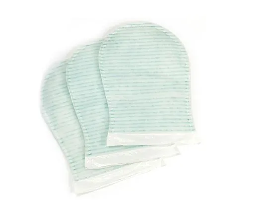 Варежка предназначена для санитарного использования для гигиены кожи пациентов, требующих специального ухода: больных, детей, престарелых. Позволяет осуществлять процедуру мытья в условиях абсолютной гигиеничности и стерильности.