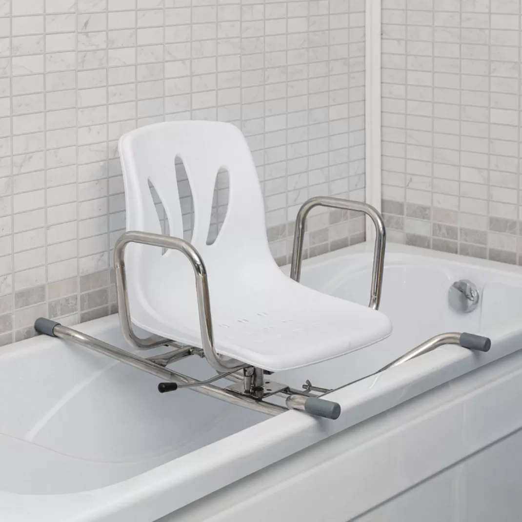 Поворотное сиденье для ванны LUX 460 предназначено для облегчения проведения гигиенических процедур людям с ограниченными двигательными возможностями и престарелого возраста. Сиденье поворачивается на 360°, тем самым упрощая процесс пересаживания в ванну и обратно. Сиденье устанавливается на бортах ванны и фиксируется механическими упорами для большей устойчивости.