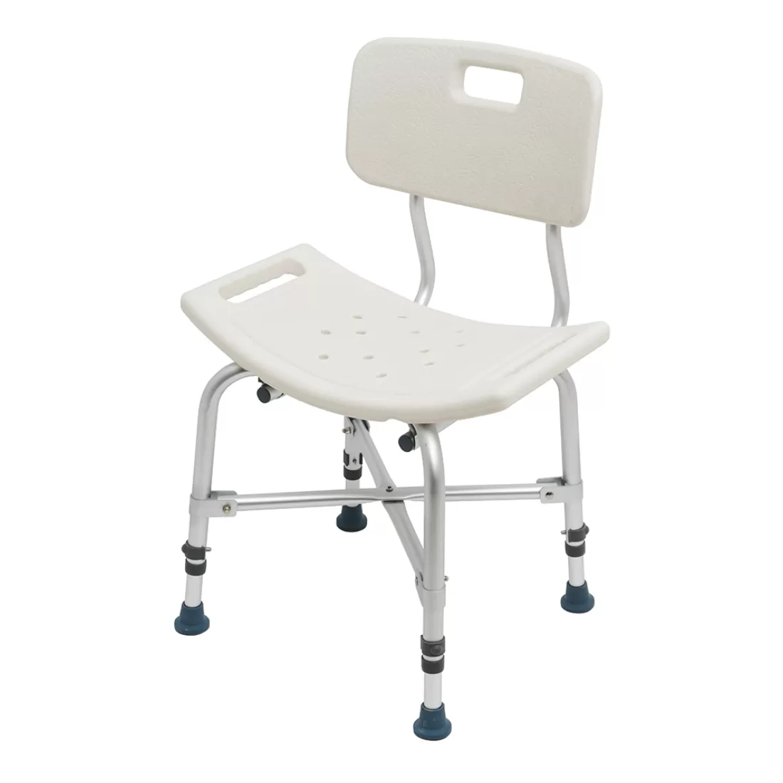 Стул регулируется по высоте и имеет удобные ручки, чтобы его можно было перемещать в медицинских учреждениях.