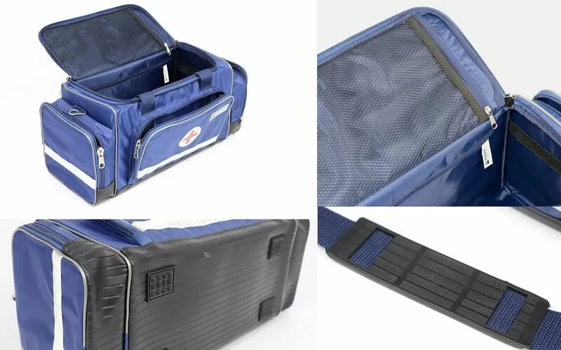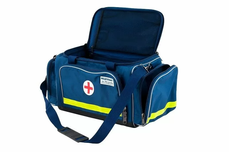 - На внешней части сумки расположен держатель для информационной таблички (для обозначения номера бригады и т.п.) и эмблема красного креста.