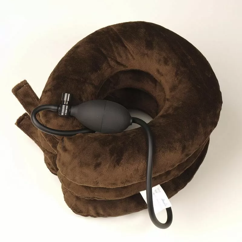 - Конструкция ортеза позволяет легко регулировать его высоту за счет изменения давления воздуха внутри. Это позволяет обеспечить регулируемую разгрузку шейных позвонков и межпозвоночных дисков.